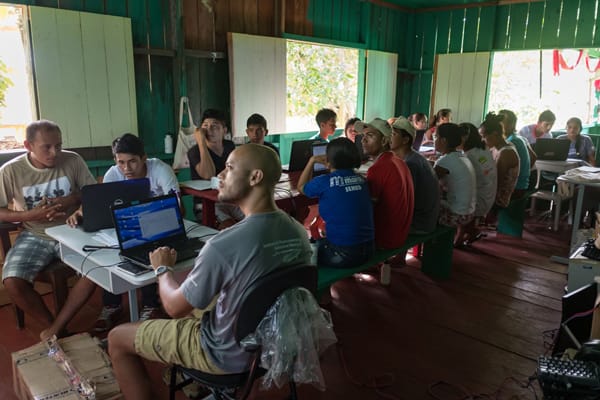 Capacitação em informática realizada em comunidade isolada da Amazônia.
