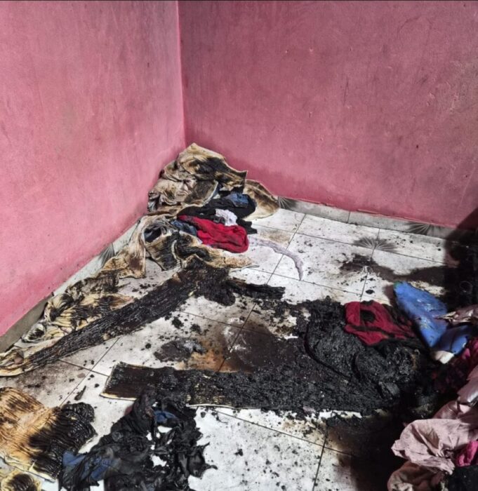 O caso foi registrado na Rua Cícero Tuchaua, no bairro Santo Antônio. A Polícia Militar foi acionada onde o Corpo de Bombeiros já havia controlado as chamas.