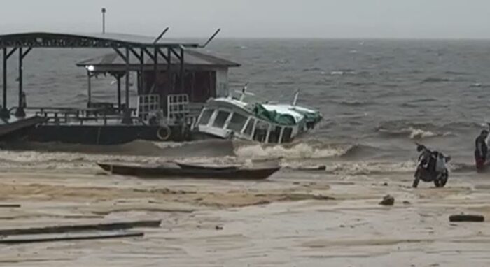 Nesse sentido, um vídeo que circula nas redes sociais mostra a força do temporal no ponto onde a lancha permanecia atracada. Então, as imagens comprovam que o mau tempo castigou a orla do município desde as primeiras horas do dia.