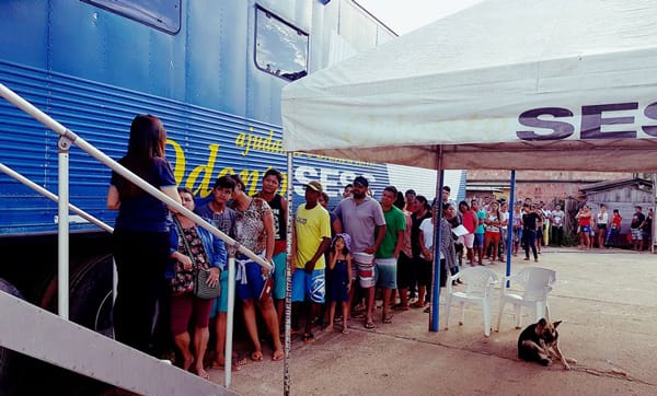 Nessa segunda-feira, 200 fichas foram distribuídas. O prefeito Rubem Barbosa acompanhou os trabalhos e comemorou a parceria: “Esse importante serviço é fruto de nossas viagens à Manaus. Estou muito feliz em ver nosso povo com atendimento de saúde bucal de qualidade. Obrigado SESC ”.