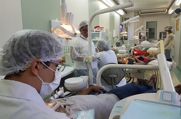 Através da parceria firmada entre a prefeitura e o Serviço Social do Comércio, os profissionais do projeto OdontoSesc atenderão a população do município diariamente até dezembro. Quatro consultórios climatizados estão sendo utilizados para esses atendimentos de saúde bucal. Além dos profissionais do Sesc, a prefeitura disponibilizou mais dois odontólogos e assistentes para somar no atendimento.