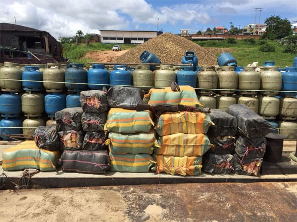 A droga, o fuzil e as munições eram transportadas de forma oculta no porão da embarcação, que levava ainda uma grande carga de seixo e botijas de gás.