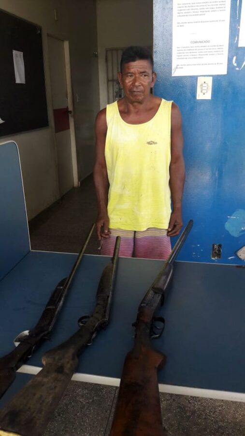 Chegando ao local, o suspeito levou a guarnição até um “roçado”, local  onde as armas estavam  escondidas, no interior do tronco de uma árvore. Segundo os policiais militares foram recuperadas uma espingarda calibre 20, cano duplo, uma espingarda calibre 16 e outra espingarda calibre 32.
