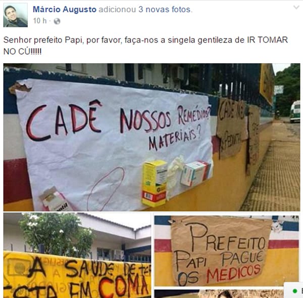 No auge da revolta um internauta, que também é usuário do serviço de saúde mandou o prefeito papi tomar naquele lugar.