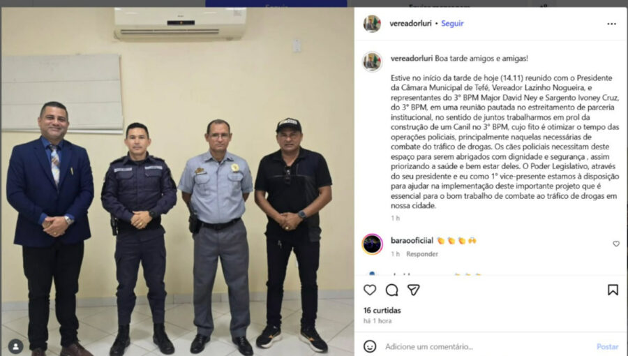 De acordo com o vereador Lurinei Oliveira, a implantação do espaço é essencial para garantir condições adequadas aos cães policiais, que desempenham papel fundamental nas buscas e investigações.