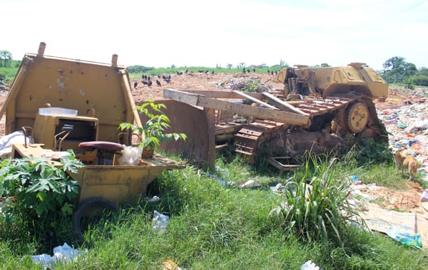 As máquinas que deveriam realizar o trabalho de compactação estão quebradas e abandonadas no local. Agricultores e moradores da área, informaram a nossa reportagem que a grande quantidade de moscas piora ainda mais os problemas causados pelo lixão.