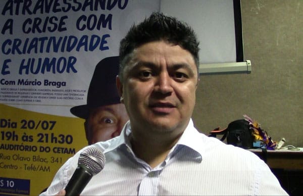 O empreendedor e humorista tefeense, Marcio Braga, realizou na noite desta quarta-feira(20), no auditório do Cetam, a palestra: Atravessando a Crise com criatividade e humor. De maneira bem humorada o humorista falou da atual crise financeira, relatando experiências próprias no ramo empresarial.