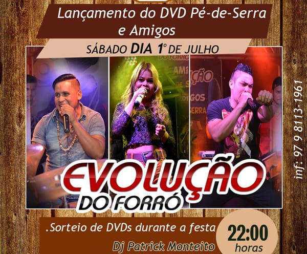 A banda tefeense, Evolução do Forró, lança neste sábado a partir das 22:00, na Vegas Boate, o terceiro registro em vídeo, intitulado DVD Pé de Serra, que conta com a participação de Alex Almeida.