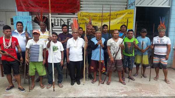 Indígenas de diversas etnias da região do médio Solimões e afluentes estão bloqueando a entrada do escritório do Distrito Sanitário Especial Indígena de Tefé( DSEI/Tefé), localizado na Rua Monteiro de Souza.