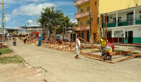 A secretaria já iniciou a construção da estrutura de madeira, e na medida que as águas forem avançando sobre a feira municipal, mais boxes serão construídos na rua.