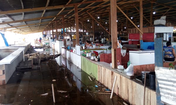 A feira de Tefé, localizada na orla do município foi inundada pelas águas do lago, desde a manhã de sábado(06), impedindo a comercialização dos feirantes localizados no local e também a circulação de pessoas.