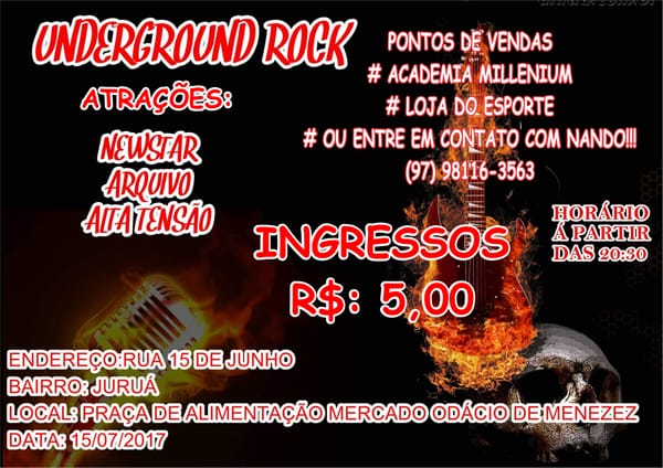 Para comemorar o dia mundial do rock, os rockeiros de Tefé poderão curtir o Underground Rock, evento que acontecerá neste sábado(15), a partir das 20:30, na Praça de alimentação do Mercado Odácio Meneses, em Tefé.