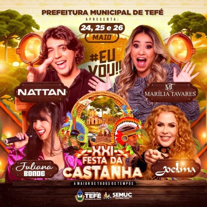 A Prefeitura de Tefé/AM divulgou, nesta quarta-feira(24), a programação da XXI Festa da Castanha, que este ano será nos dias 24, 25 e 26 de maio.