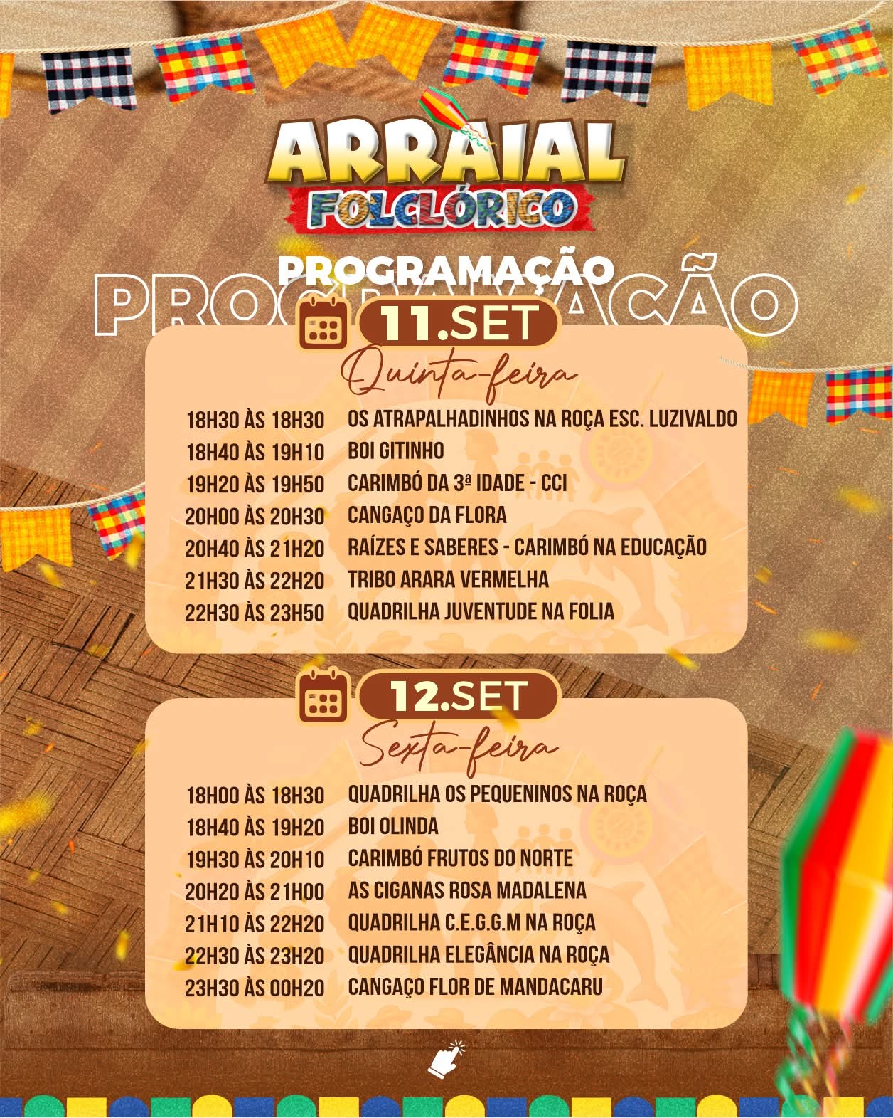 A festa terá início sempre às 18h, na Praça Remanso do Boto, prometendo encantar o público com noites repletas de cultura, tradição e alegria.
