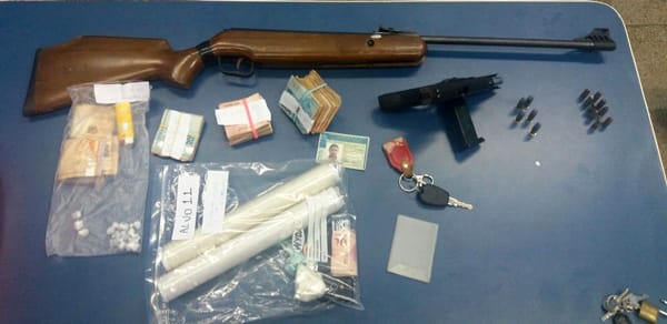 Durante as diligências os policiais prenderam com Paulo Roberto uma pistola nove milímetros, um rifle calibre 22, 14 munições intactas, sendo nove de nove milímetros e cinco de calibre 38, além de R$ 5.010 mil em espécie. Com Alex as equipes apreenderam 14 porções de maconha e R$ 249 em espécie. Já com Wender foram apreendidas 48 trouxinhas de oxi, um tablete de maconha e R$ 55 em espécie. Franknaldo foi preso em posse de 30 trouxinhas de maconha do tipo skunk. Com Rosinaldo os policiais apreenderam três porções de maconha e um aparelho celular roubado. Já Jucélio estava em posse de 16 porções de maconha.