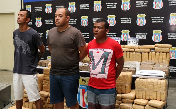 O policial militar, e suplente de vereador, Robson Almeida Siqueira Filho, o “Robinho”, Bruno Albuquerque da Costa, o “Pitilico”, Alan Kennedy de Souza Nascimento e Jamesson Alves de Souza, foram presos em flagrante na tarde dessa terça-feira (2), no município de Iranduba, por equipes do Departamento de Repressão ao Crime Organizado (DRCO) suspeitos de envolvimento com o tráfico de drogas.
