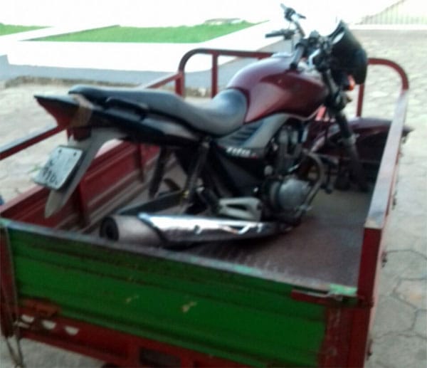 Após deslocamento até a casa informada, foi avistada a motocicleta e constatado que a motocicleta era da vítima. Contudo, o acusado não foi encontrado em sua localidade. Segundo informações de moradores e vizinhos da localidade do proprietário do imóvel, Zinho já praticava vários furtos e roubos pelas imediações e usa sua casa para guardar os produtos de roubos e desmanchar motos, para posteriormente vender no mercado negro.
