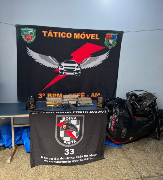 Na sequência, os policiais seguiram em patrulhamento fluvial até a comunidade do Bom Fim, onde abordaram outro suspeito, conhecido como “Mazuca Pirata do Rio”. Com ele, foram encontrados 10 quilos de skank — uma variação mais potente da maconha — além de uma arma de fogo modificada. O homem foi preso em flagrante por tráfico de drogas.