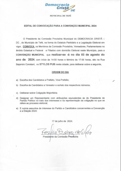 EDITAL DE CONVOCAÇÃO PARA A CONVENÇÃO MUNICIPAL 2024 – DC