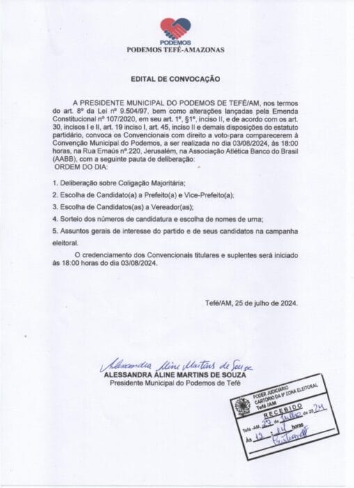 EDITAL DE CONVOCAÇÃO – PODEMOS TEFÉ